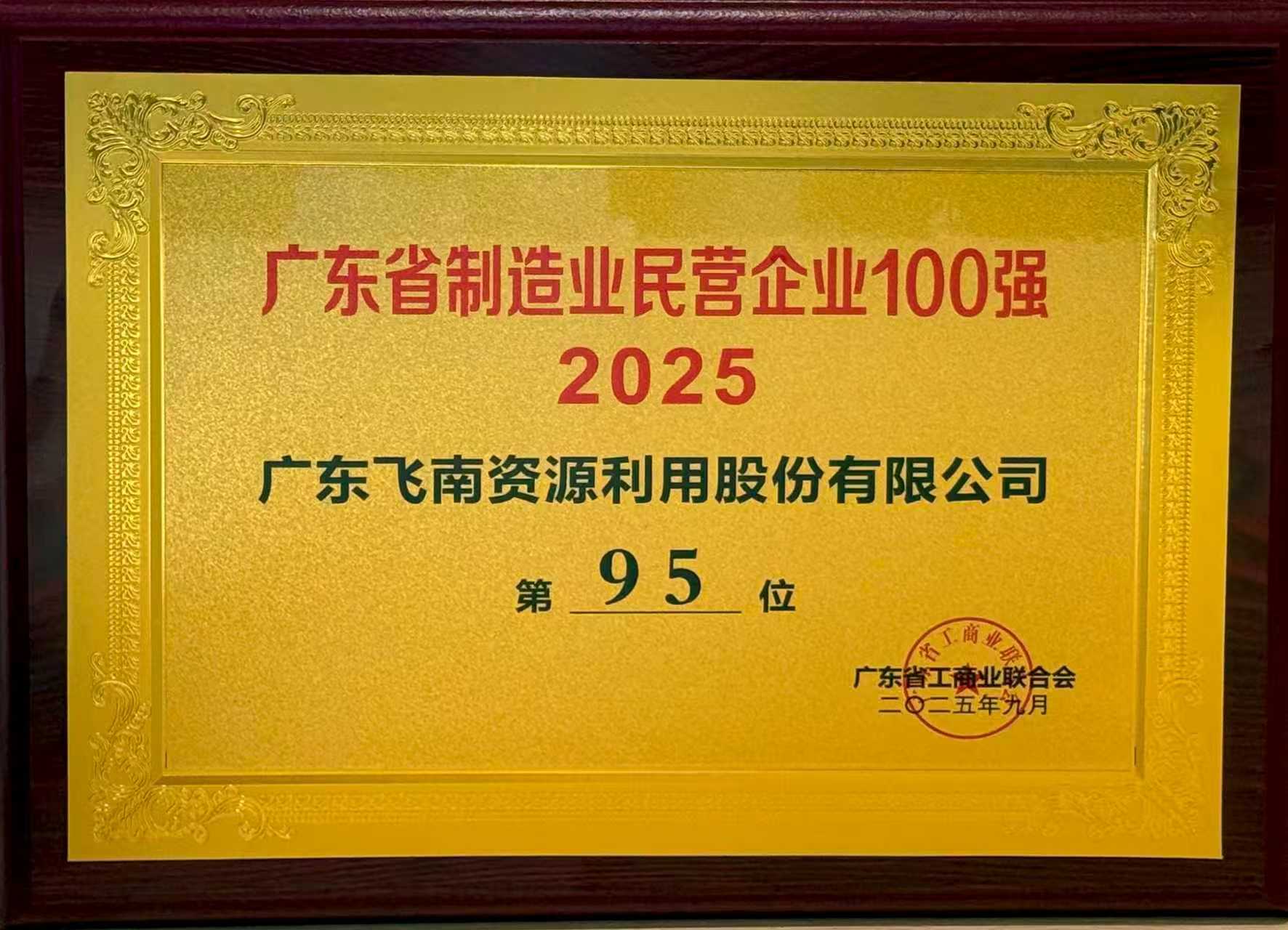 2025廣東省制造業(yè)民營企業(yè)100強